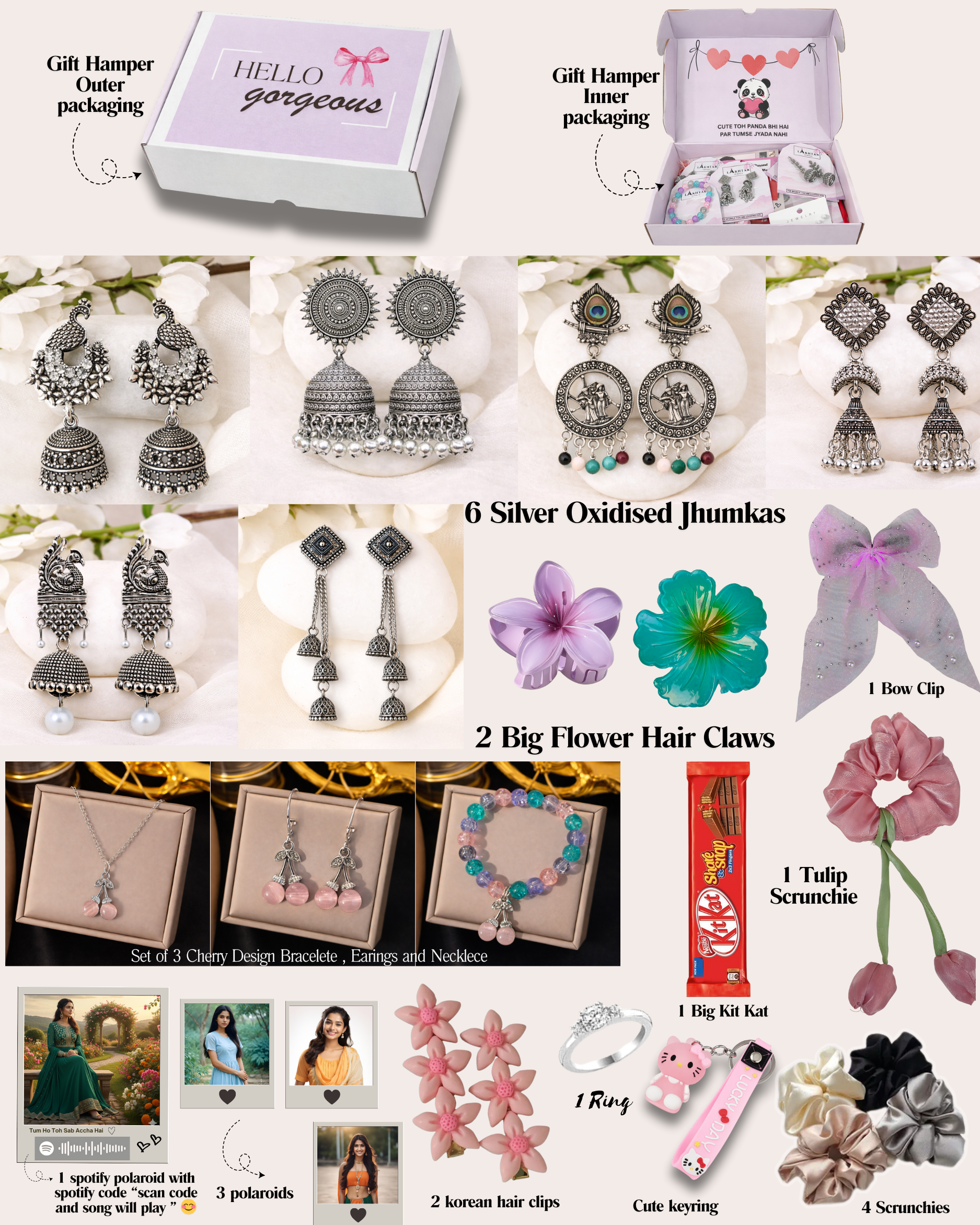 This combo is thoughtfully assembled to offer style, convenience, and charm in one box. Whether you're dressing up for a special occasion, creating cute hairstyles, or gifting someone something memorable—this set has everything!