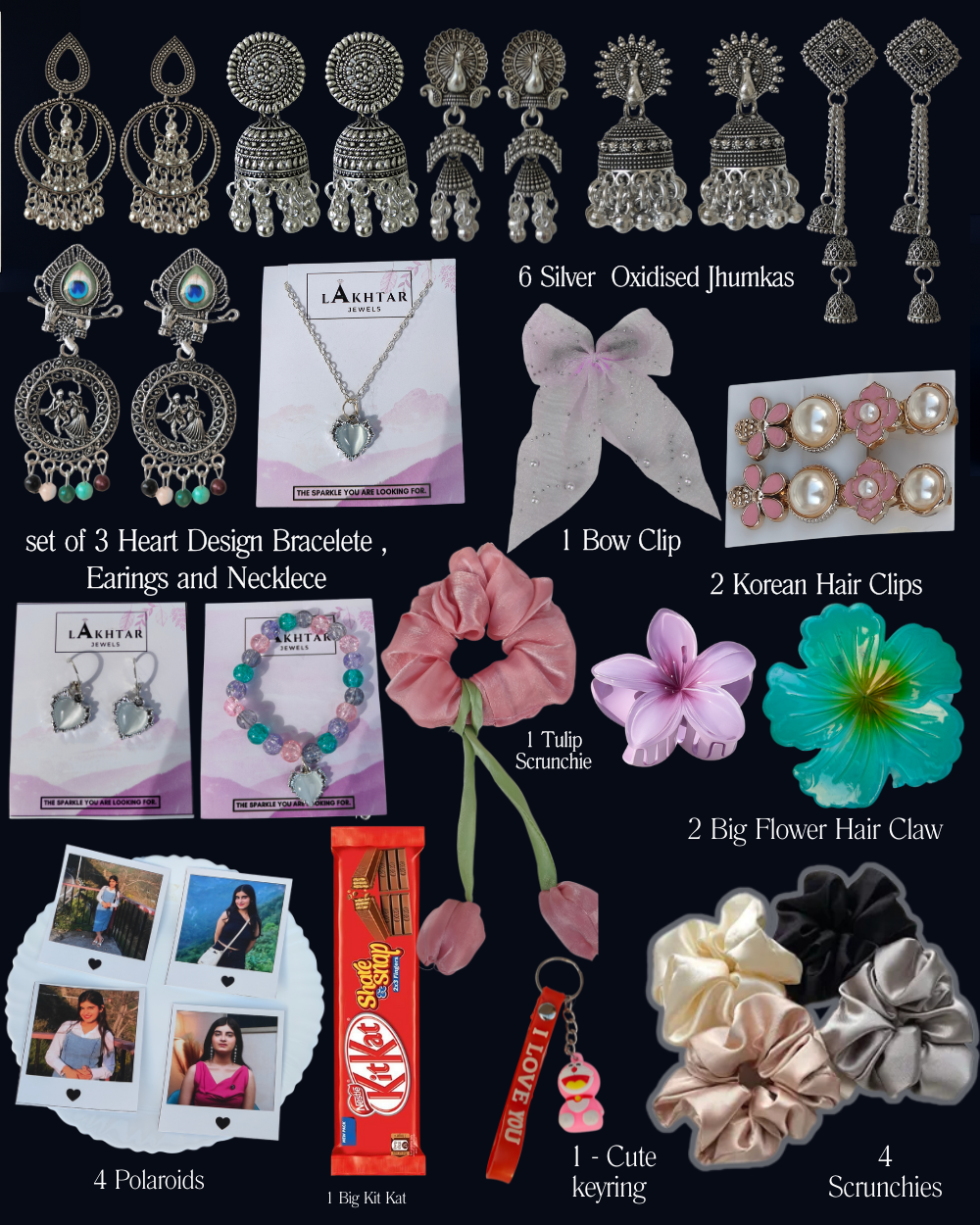 This combo is thoughtfully assembled to offer style, convenience, and charm in one box. Whether you're dressing up for a special occasion, creating cute hairstyles, or gifting someone something memorable—this set has everything!